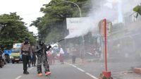 Sulselexperience.com, Makassar — Anggota Den Gegana Sat Brimob Polda Sulsel melakukan Penyemprotan cairan Disininfectan untuk Baca !!!