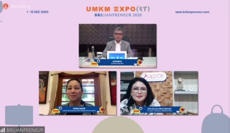 “Sebagai bank yang memiliki fokus untuk pengembangan sektor UMKM, hingga saat ini Bank BRI telah membina pelaku UMKM Indonesia untuk mengikuti program naik kelas. Kita tahu bahwa produk kreasi UMKM Indonesia tidak hanya bernilai kreativitas dan ekonomi tetapi juga memiliki keunggulan kualitas yang dapat menembus pasar global. ‘ujarnya saat daring pameran industri kreatif UMKM EXPO(RT) BRILIANPRENEUR 2020 selasa 1/12/2020.