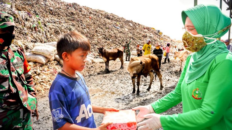 Makassar,sulselexperience,com- Ketua Persit Kartika Chandra Kirana Daerah XIV/Hasanuddin, Ibu Arinta Andi Sumangerukka didampingi pengurus menyambangi warga Tempat Pembuangan Akhir (TPA) sampah Tamangapa Antang Makassar, Jumat (6/11).