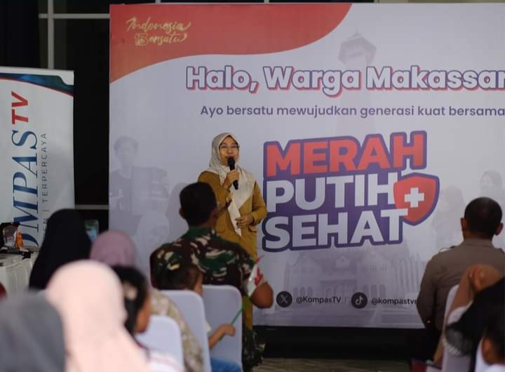 Sulselexperience, Makassar — Mewakili Wali Kota Makassar, Plt Kepala Dinas Komunikasi dan Informatika (Kominfo), Ismawaty Nur hadir menyapa para peserta program Merah Putih Sehat yang diadakan Kompas TV Biro Makassar.