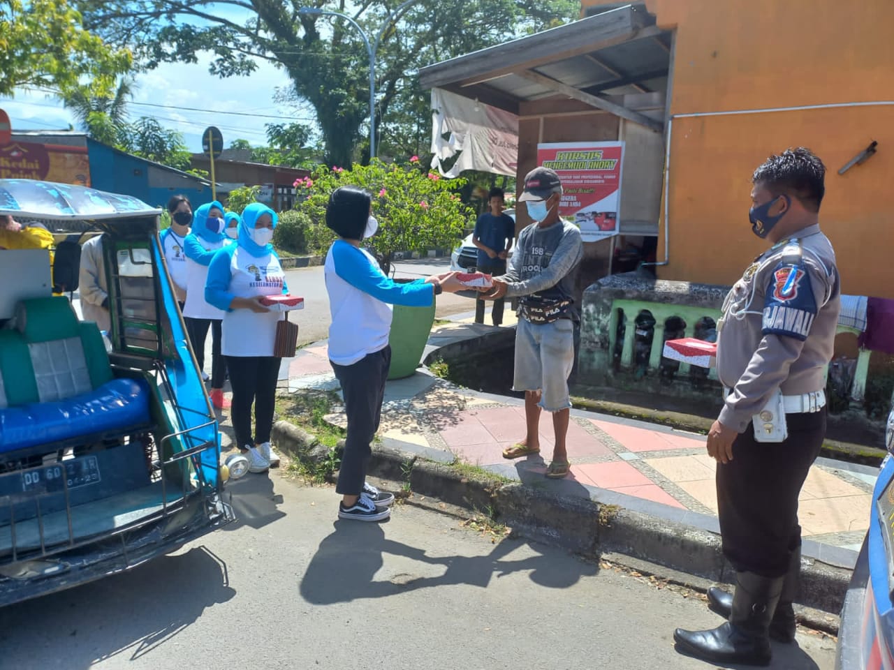 Experience.com, Polman – Bhayangkari dan Satlantas Polres Polman, membagi-bagikan nasi kotak gratis kepada para tukang becak di jalan-jalan dan pangkalan bentor. aksi tersebut dilakukan sebagai bentuk kepedulian pihak Kepolisian dan Bhayangkari ditengah pandemic corona virus disease (covid-19), senin (27/9/2021).
