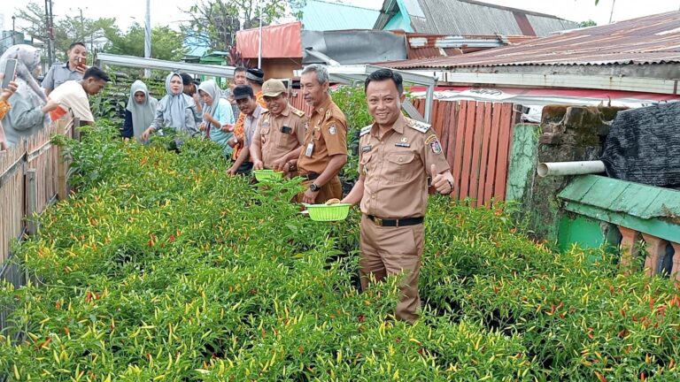 Makassar,Experience — Camat Tallo, Alamsyah Sahabuddin, S.STP., M.Si., melakukan panen perdana cabe di Lorong Wisata (Longwis) Suncheo, Kelurahan Tallo, Sabtu (08/07/2023).