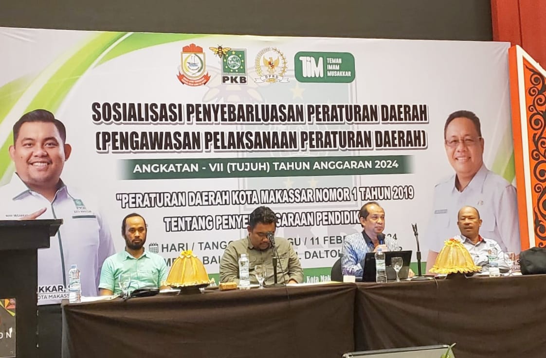 Makassar,Experience – Anggota DPRD Kota Makassar, Imam Musakkar menggelar fungsi pengawasan dalam rangka penyeberluasan peraturan daerah (Perda) Nomor 1 Tahun 2019 terkait Penyelenggaraan Pendidikan, di Hotel Dalton, Jl Perintis Kemerdekaan, Minggu (11/2/2024).