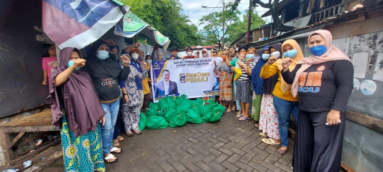 Jumat Berbagi, NasDem Makassar Bagi Ratusan Sembako ke Warga yang Tak Mampu