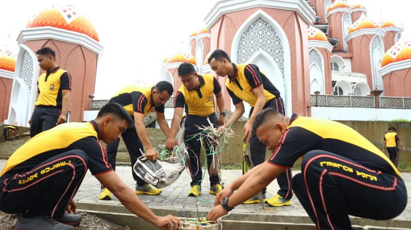Dengan peralatan Sapu, dan Sekop, personel Batalyon A Pelopor yang dipimpin langsung Komandan Batalyon A Pelopor AKBP Sapari, S.Sos yang didampingi Wadanyon A Pelopor AKP Darwis Daud Poku, S.H terlihat juga para pejabat utama Batalyon A Pelopor serta pengurus bhayangkari ranting Yon A Pelopor.