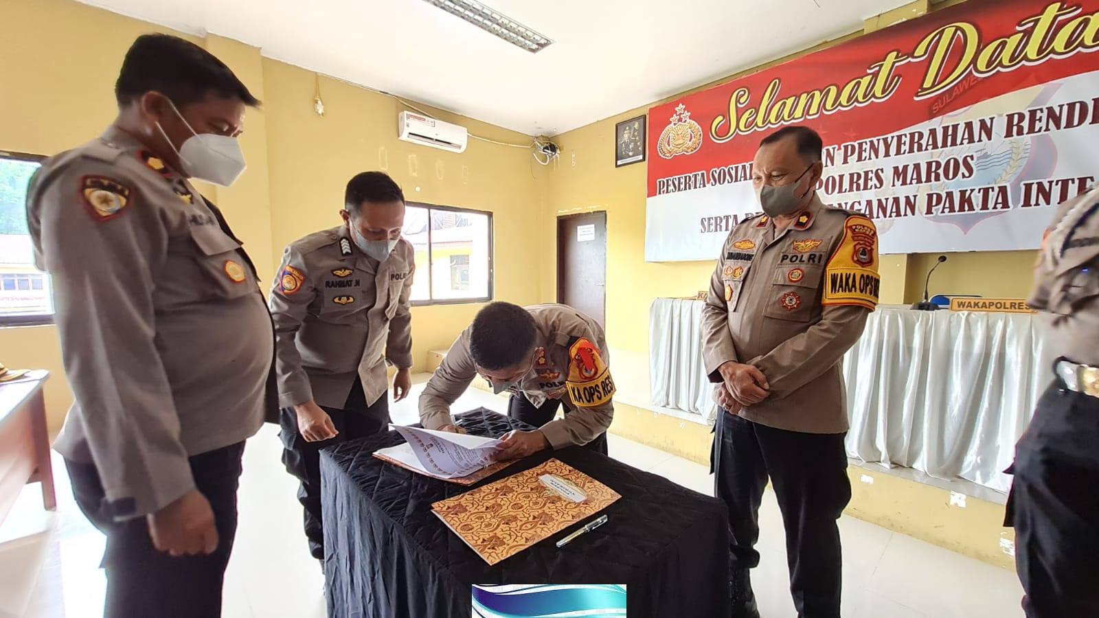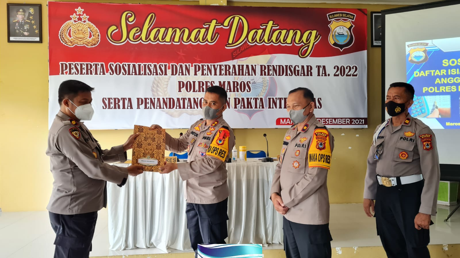 Maros, Experience — Kapolres Maros menyerahkan (Daftar Isian Pelaksanaan Anggaran) DIPA RKA-KL Satker Polres Maros T.A. 2022 kepada Satker dan Kapolsek yang dilaksanakan di Aula Promoter Polres Maros.