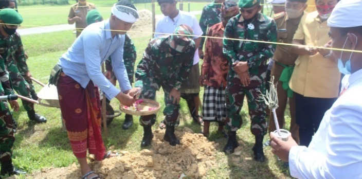 Dikatakan Kapenrem, prosesi peletakan batu pertama dilakukan oleh Danyonif 725/Woroagi Mayor Inf Muhammad Amin, S.I.P.