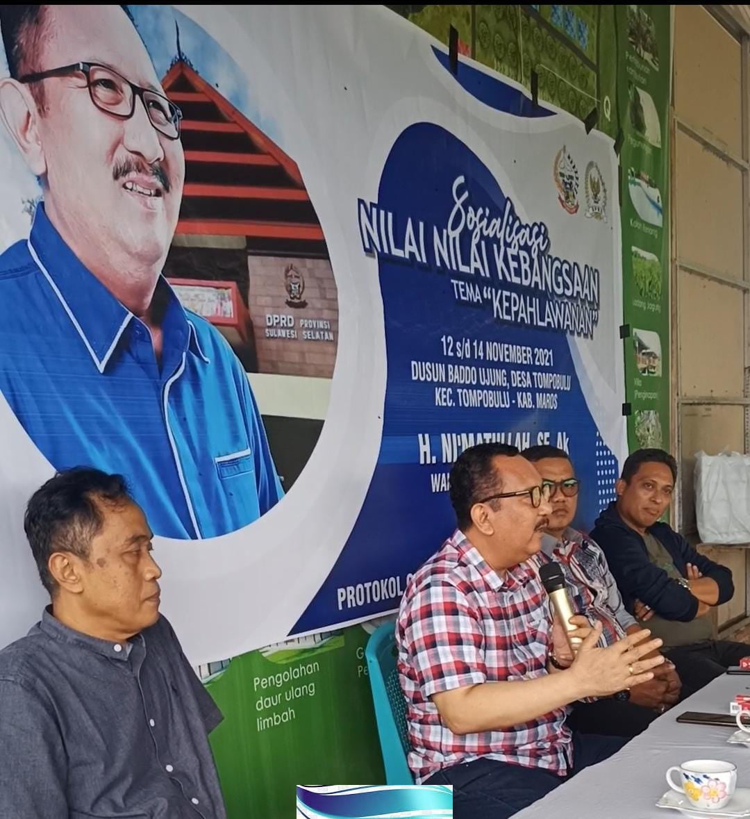SulselExperience.com, Maros – Wakil Ketua DPRD Provinsi Sulawesi Selatan, H. Ni’Matullah, SE,Ak melaksanakan Sosialisasi Nilai-Nilai Kebangsaan dengan tema “Kepahlawanan”. Kegiatan ini serentak di laksanakan oleh Anggota DPRD Provinsi Sulawesi Selatan tanggal 12 s/d 14 November 2021.