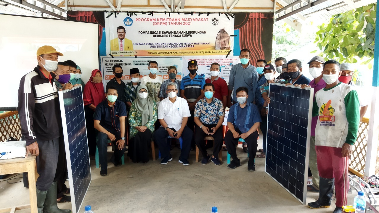 EXPERIENCE,MAKASSAR-Sejumlah dosen dan mahasiswa dari Universitas Negeri Makassar berkumpul di Desa Lempangang Kecamatan bajeng Kabupaten Gowa tepatnya di Balla Rewako (Pusat kegiatan acara desa). Mereka tergabung dalam Tim Program kemitraan Masyarakat (PkM DRPM) yang mengadakan kegiatan Pengabdian kepada masyarakat bagi para Petani pada hari Sabtu tanggal 21 Agustus 2021. Kegiatan yang mengusung Tema “Pompa Irigasi Sawah Ramah Lingkungan Berbasis Tenaga Surya” ini disambut baik oleh Kepada Desa Lempangang Bapak H. Bohari Amin, SE.