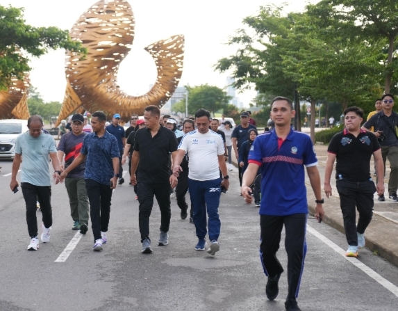 Sulselexperience, Makassar — Penjabat Gubernur Sulsel Prof Fadjry Djufry jalan sehat bersama Regional CEO Bank Mandiri Sulawesi dan Maluku, Atta Alfa Wanggai, beserta dengan para kepala Organisasi Perangkat Daerah (OPD) lingkup Pemprov Sulsel, dan juga para karyawan Bank Mandiri, Sabtu, 1 Februari 2025.