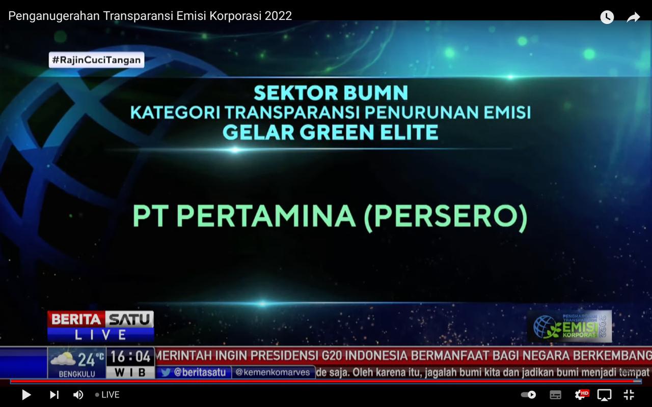 News Director Berita Satu Media Holding Primus Dorimulu mengatakan penghargaan ini merupakan apresiasi terhadap Pertamina yang sudah menjalankan kepatuhan dalam aspek Environment, Social and Governance (ESG), lewat transparansi kepatuhan menurunkan emisi gas rumah kaca.