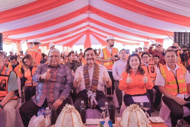 Menko Kemaritiman dan Investasi Luhut Binsar Pandjaitan, Gubernur Sulawesi Tenggara Ali Mazi dan Bupati Kolaka Ahmad Safei turut hadir dalam seremoni tersebut.