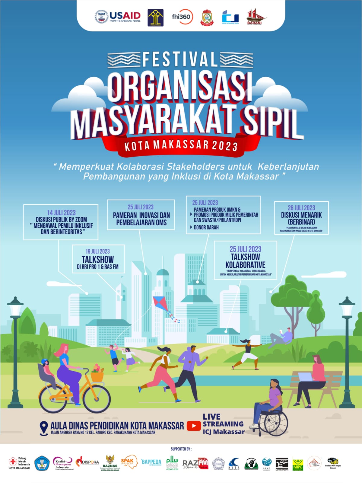 Makassar, Experience — Mendorong untuk semakin menegaskan fungsi dan peran Organisasi Masyarakat Sipil serta memperkuat Kolaborasi Stakholders untuk Keberlanjutan Pembangunan Kota Makassar beberapa OMS di kota Makassar menggelar ” FESTIVAL ORGANISASI MASYARAKAT SIPIL KOTA MAKASSAR, 2023
