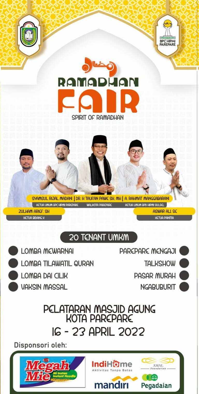 “Puluhan pengusaha muda sudah dipastikan terlibat di ramadhan fair sebagai wujud dari pemulihan ekonomi di Kota Parepare” Pungkasnya.