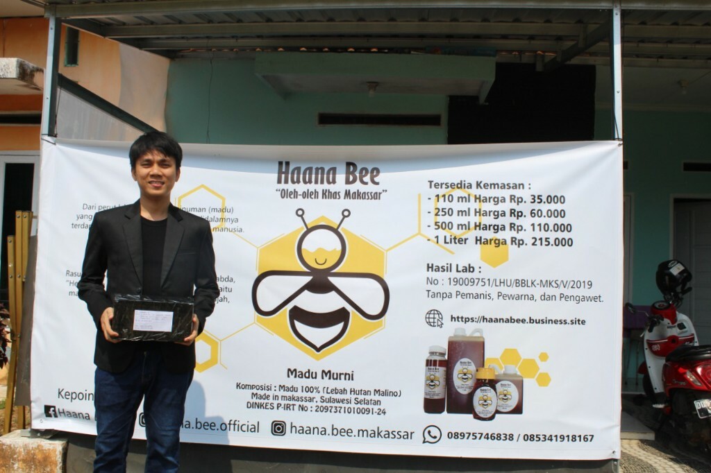 Bermodal peralatan dapur seadanya, Radinal Ridwan mulai membuka usaha Madu Hutan Asli Makassar Haana Bee pada 2019 dengan komitmen menyejahterakan sebanyak-banyaknya petani madu lokal.