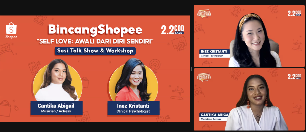 EXPERIENCE, Jakarta – Shopee sebagai e-commerce yang selalu memperhatikan kebutuhan para penggunanya, menghadirkan BincangShopee 2.2 COD Sale yang bertajuk “Self Love: Awali dari Diri Sendiri” dengan mengundang dua narasumber yaitu Cantika Abigail, seorang Musisi/Akrtis dan Inez Kristanti seorang Clinical Psychologist. Sebagai bagian dari kemeriahan kampanye Shopee 2.2 COD Sale yang berlangsung hingga 2 Februari nanti, BincangShopee kali ini membahas mengenai pentingnya mengelola rasa cinta dan apresiasi untuk diri sendiri melalui berbagai cara.