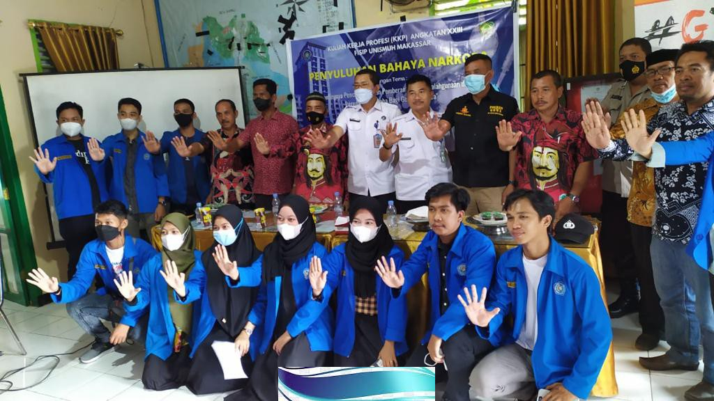 SulselExperience com, Gowa – Bertempat di balai desa kantor desa julupamai kecamatan pallangga kabupaten gowa, Mahasiswa Kuliah Kerja Profesi angkatan XXIII Universitas Muhammadiyah Makassar Melaksanakan kagiatan Penyuluhan “Pentingnya pencegahan penyalagunaan narkotika”, kamis (25/11/21)