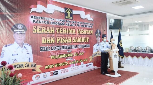 MAKASSAR, – Kepala Kantor Imigrasi Kelas I TPI Makassar, Andi Pallawarukka resmi digantikan oleh Agus Baca !!!