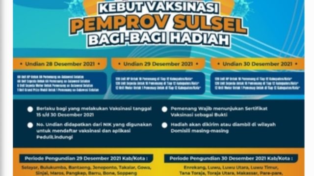 Pemprov Sulsel Siapkan Doorprize Untuk Mengejar Target Vaksinasi