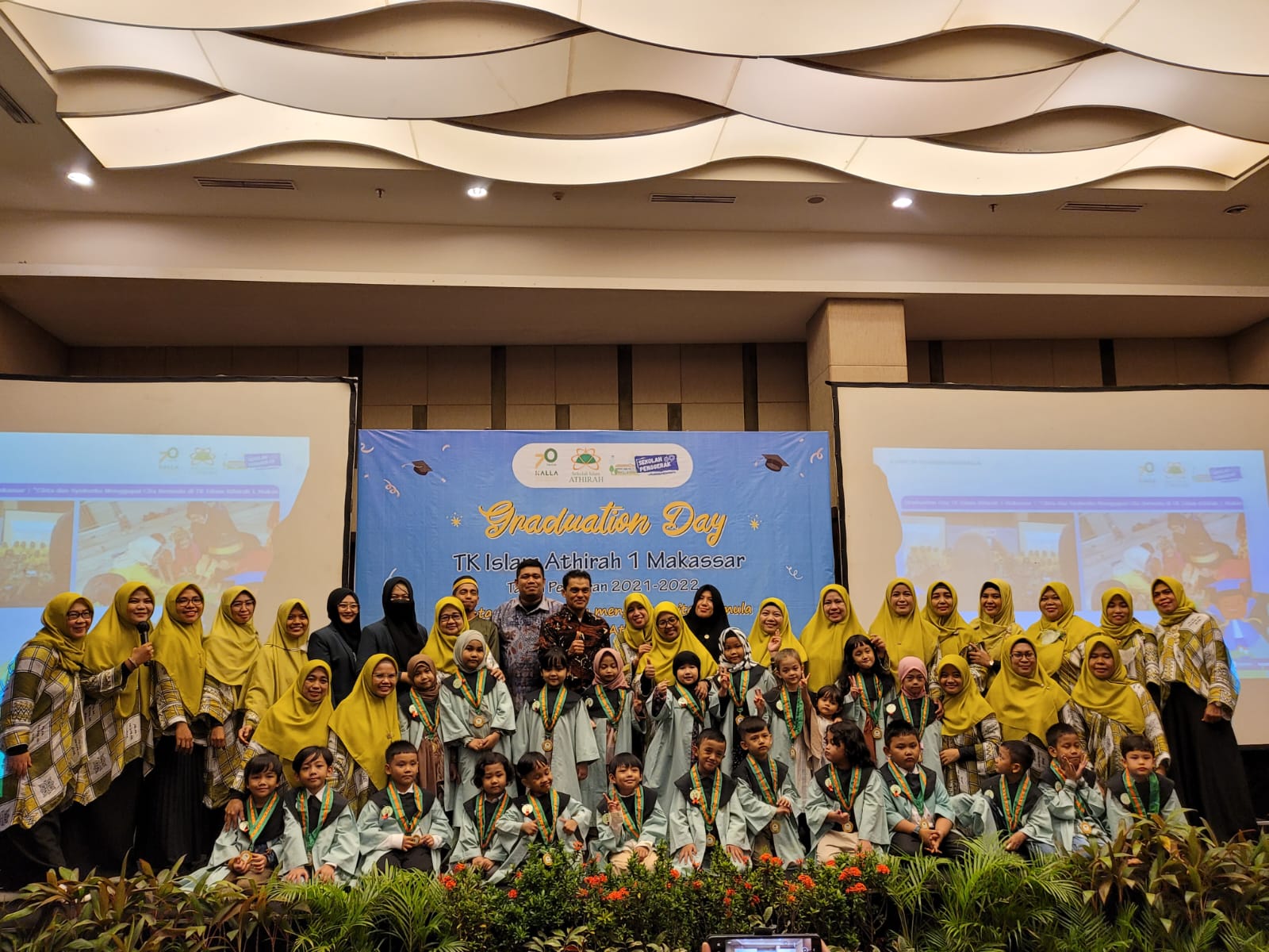 Penamatan TK Islam Athirah 1 Makassar berlangsung khidmat. Kegiatan penamatan kali ini digelar di Saoraja Ballroom lantai 2 Wisma Kalla Makassar pada Sabtu (18/6/2022).