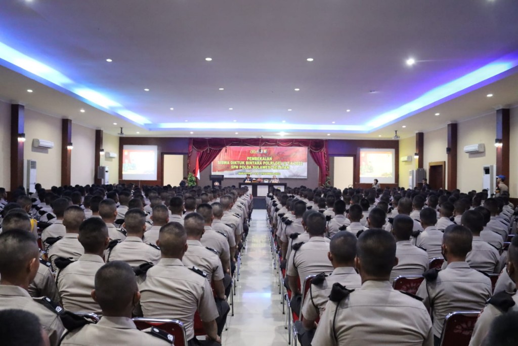 Experience, Makassar – Wakil Komandan Satuan Brimob Polda Sulsel Akbp Fajar Dani Susanto, S.I.K., M.H. memberikan Pembekalan kepada siswa Diktuk Bintara Polri Gelombang II Tahun 2022 SPN Polda Sulsel di Auditorium Paramartha SPN Batua jalan Urip Sumoharjo Makassar, Sabtu (3/12/2022).
