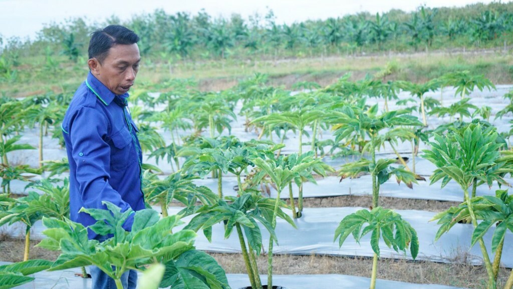 Lahan yang awalnya 50 Ha, kini sudah 85 Ha, Agar petani binaanya lebih semangat dan sejahtera, di selah lahan porang yang agak rendah ditanami padi dan pelihara ikan. ‘urai Syahar.
